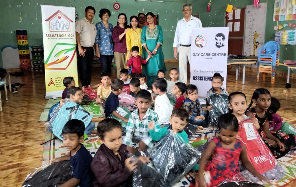 On 17th October 2024 the children of the Chimbel Day Care Centre were presented with School bags by the Staff of Assistencia, as a part of their sponsorship of the Project. Mr. John & Mrs. Ingrid spent time interacting with the children and gave them the bags, amid joy at receiving these gifts.