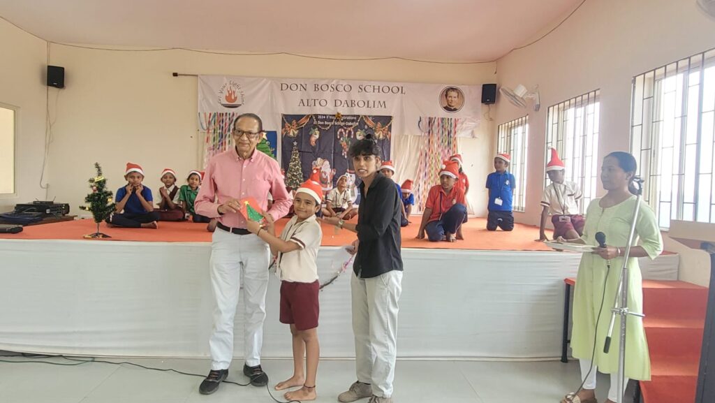 This was followed by a vote of thanks by the School In-Charge Mrs.Tracy Fernandes. Mr. Furtado was presented with a handmade Christmas card and token of remembrance from the Don Bosco School following which he was invited to address the gathering. Mr. Furtado appreciated all the work the Management and Staff put into preparing the children and wished everyone a Joyous Christmas season.