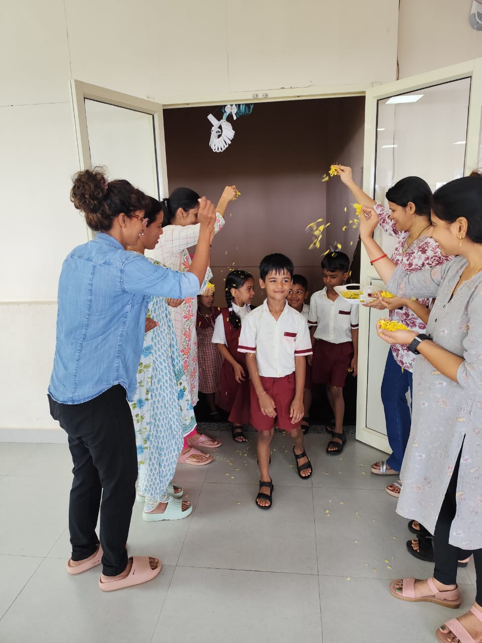 The beautifully decorated stage was a testament to the creativity of our Primary Teachers. The assembly began at 9:45 am with a warm welcome ceremony, where the students were welcomed with showers of flowers and were given tokens.